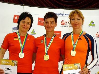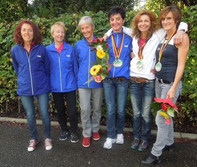 den Deutschen Meistertitel in der Mannschaft bei den Aktiven. Irmgard Olma als 5. in der W60, Bärbel Paul als 6. in der W55 und Uschi Bergler als 5. in der W50 komplettierten den äußerst erfolgreichen Ausflug der Flachländerinnen in die Berge.